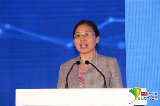 團中央書記處書記汪鴻雁在第三屆“創青春”中國青年創新創業大賽啟動儀式上致辭。中國青年網記者 李川 攝