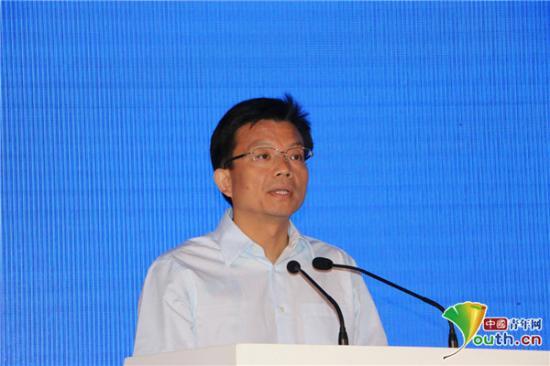 上海市副市長時光輝在第三屆“創青春”中國青年創新創業大賽啟動儀式上致辭。中國青年網記者 李川 攝