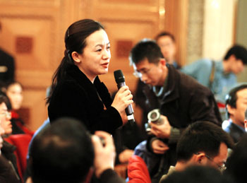 A journalist raises questions during a press conference on the Fourth Session of the Tenth National People's Congress (NPC) in Beijing on March 6, 2006. Ma Kai and Zhu Zhixin, minister and vice-minister in charge of the National Development and Reform Commission, adressed the media during the conference on Monday. [Xinhua Photo]