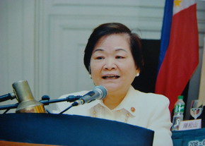 菲華聯誼會達沃分會理事長黃美麗發表講話 吳先寧博士作專題報告