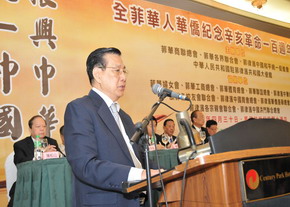 2011年4月30日,全菲律賓華人華僑紀念辛亥革命一百周年大會在馬尼拉隆重舉行。此次大會由菲華商聯總會、菲華各界聯合會、菲律賓中國和平統一促進會和中國駐菲律賓大使館主辦,由菲華婦女會、菲華工商總會、菲華體育總會、菲華聯誼總會、菲律賓中華總商會、旅菲各校友會聯合會、菲律賓中國商會總會、菲律賓華僑善舉總會、菲律賓各宗親會聯合會、菲律賓中國洪門聯合總會協辦,菲華社會知名人士、僑領僑胞、華校師生、兩岸留學生、國民黨人士及駐菲中資機構代表等1000多人出席會議。