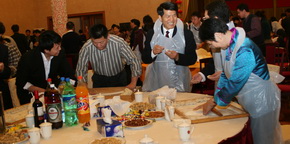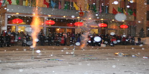 使館為大家安排了豐富多彩的文化娛樂活動。大家圍坐在一起興致勃勃地欣賞中央電視臺春晚節目、包年夜餃子。特別布置的舞臺吸引大家紛紛登臺獻藝,或一展歌喉,或翩翩起舞,盡情抒發對祖國的熱愛和眷戀,充分表達節日的歡樂心情。使館廣場上的焰火燃放更是把整個活動推向了高潮。