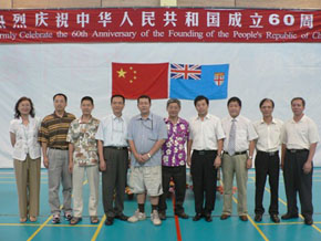 2009年9月20日上午,座落在斐濟首都蘇瓦的華人學校斐濟逸仙學校禮堂座無虛席,600多華人華僑和中資機構代表濟濟一堂,出席斐濟中國和平統一促進會和華人協會聯合舉辦的慶祝中華人民共和國成立60周年升旗儀式和文體活動。活動在莊嚴的中斐國歌聲中開始。韓志強大使及和統會會長袁炳棠和華人協會會長司徒新耀分別發表了熱情洋溢的致辭。