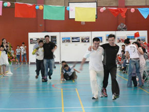 活動中,華僑華人代表和使館人員表演了歌曲、新疆舞、單口相聲等精彩節目,並進行了“兩人三足”、拔河等體育比賽。最後,在場所有人員齊聲合唱《歌唱祖國》,祝願祖(籍)國不斷走向繁榮、富強。 |