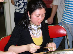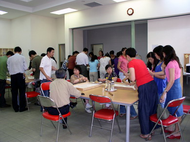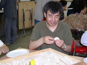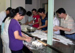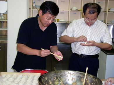 現場氣氛喜慶、歡樂、和諧,大家都積極踴躍,大展身手。大使夫人殷國梅女士雖是南方人,但技術十分嫻熟,包的餃子個個餡大皮薄,形狀美觀;政治處的年青同志們一邊向洪亮公參等老同志學習,一邊欣賞著自己的豐碩成果;有些孩子是第一次包餃子,在家長的指導下所包的餃子也象模象樣。