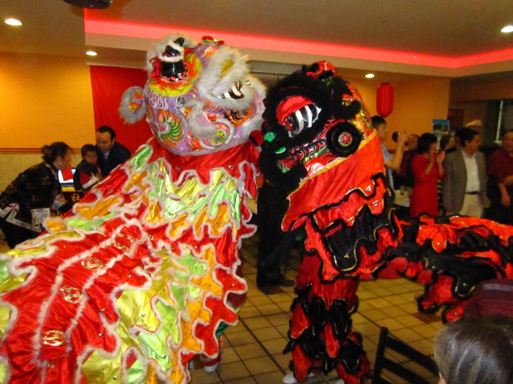 晚會上,當地華人舞獅團精彩的演出贏得陣陣掌聲。出席晚會的華僑華人約200人。