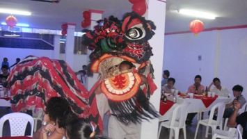 在歡樂的鑼鼓和樂曲聲中,兩地僑胞和巴市中華僑聯會中文班的學生分別表演了舞獅和文藝節目。 |