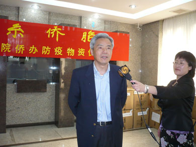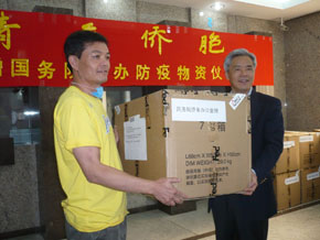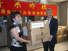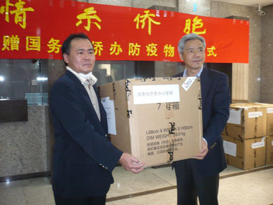 2009年5月6日,來自墨西哥中華會館、墨西哥華人華僑社團聯合總會和墨西哥臺灣商會的代表在中國駐墨西哥大使館接受國僑辦贈送的口罩。
