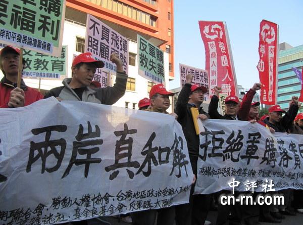 資料圖:2010年初,多個民間統派社團集會強調,停止軍購才能帶來兩岸真正和解。(中評社 黃筱筠攝)