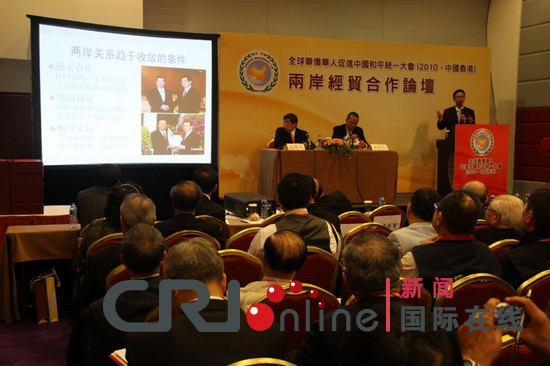 全國政協副主席、中共中央統戰部部長杜青林在大會開幕式上表示,求和平、求發展、求共贏符合兩岸關係發展方向,是兩岸同胞最真誠的願望和最強烈的共識。兩岸關係和平發展的局面,有賴于海內外同胞共同維係,同時兩岸關係和平發展的成果,也必定為全體中華兒女所共享。 “當前,兩岸關係和平發展深入人心,勢頭強勁。兩岸政治互信不斷增強,制度化協商穩步推進。反對‘臺獨’堅持‘九二共識’的共同政治基礎進一步鞏固,兩岸經貿合作成果豐碩,直接三通全面實現,經濟合作框架協議順利簽訂,標志著兩岸經濟關係進入新階段,兩岸民間交流日益密切,特別是在應對國際金融危機衝擊和抗擊重大自然災害等方面,兩岸同胞同舟共濟相互扶持,體現了血濃于水的同胞之愛,彰顯了患難與共的手足之情。”