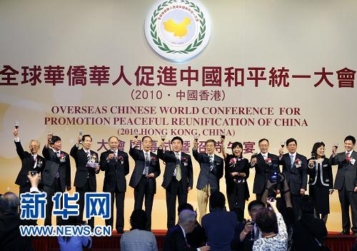 新華網香港9月22日電(記者茆雷磊 呂諾 陳靜)為期兩天的全球華僑華人促進中國和平統一大會(2010·中國香港)22日在港圓滿閉幕。全體與會者在閉幕式上一致通過了大會綱領性文件《香港宣言》,呼吁全球華僑華人攜手推進兩岸雙贏新局,共同迎接海峽兩岸和平發展。