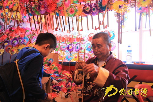 非物質文化遺產傳承人“風車王”王國華老人現場制作風車(你好臺灣網 謝彧 攝)