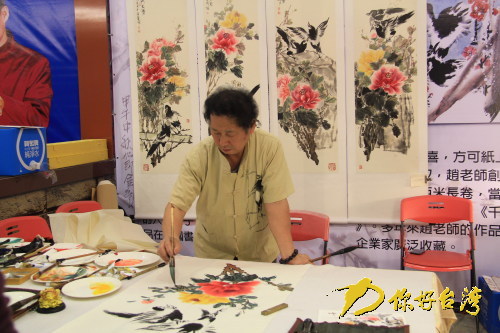 潑墨成喜鵲的畫家“喜鵲王”正在作畫(你好臺灣網 謝彧 攝)