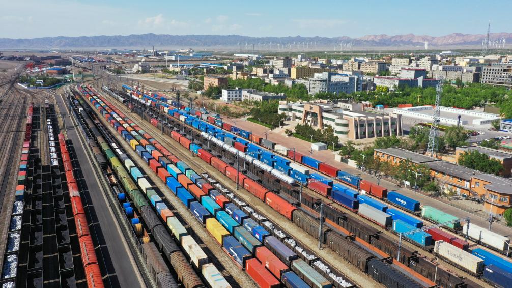 中國鐵路烏魯木齊局集團有限公司統計數據顯示,截至5月31日,霍爾果斯鐵路口岸通行中歐(中亞)班列3248列,同比增長1.9%;阿拉山口鐵路口岸通行中歐(中亞)班列3171列,同比增長17.3%。新華社發(于暉 攝)