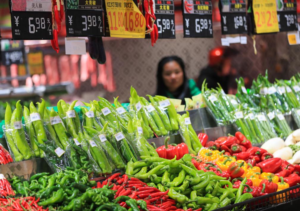3月9日,消費者在貴州省從江縣一家超市選購蔬菜。新華社發(羅京來攝)