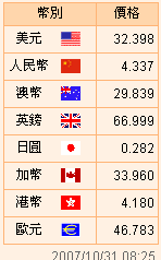 臺幣匯率公告2007.10.31
