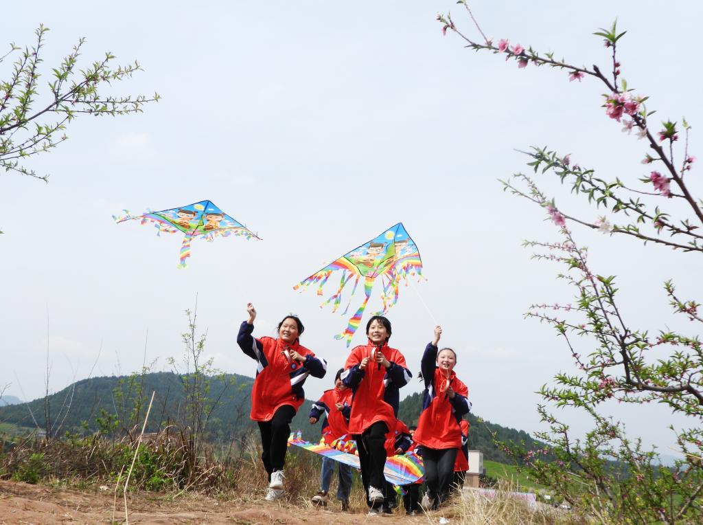 4月3日,四川省達州市渠縣新市鎮第一小學學生在陽光大課間放風箏。