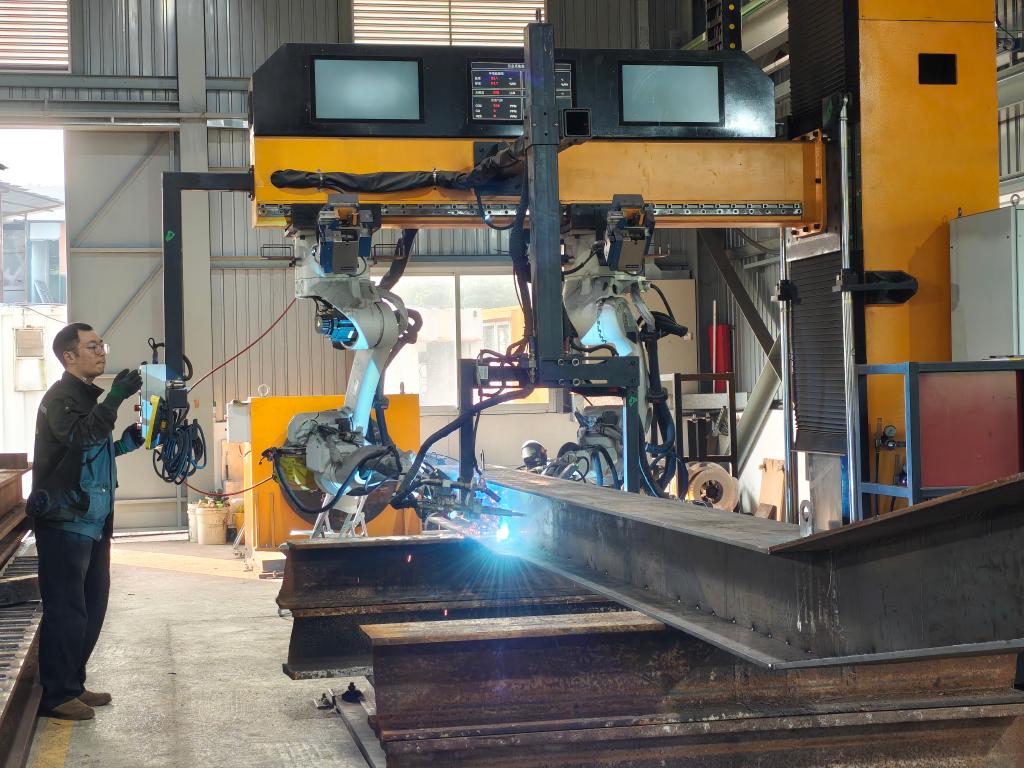 在和利綠色動力有限公司位于香港粉嶺的焊接工廠,梁志豪身著工裝夾克,站在顯示屏前輸入指令,兩只機械臂就“左右開弓”,不到兩小時就把一段6米長的H型高強度鋼材焊接完畢。在引進這套智能技術方案之前,同樣的工作需要兩個技工戴上厚重的防護頭盔,身穿“氣鼓鼓”的降溫風扇外套,在四濺的火花中用烙鐵手動完成。
