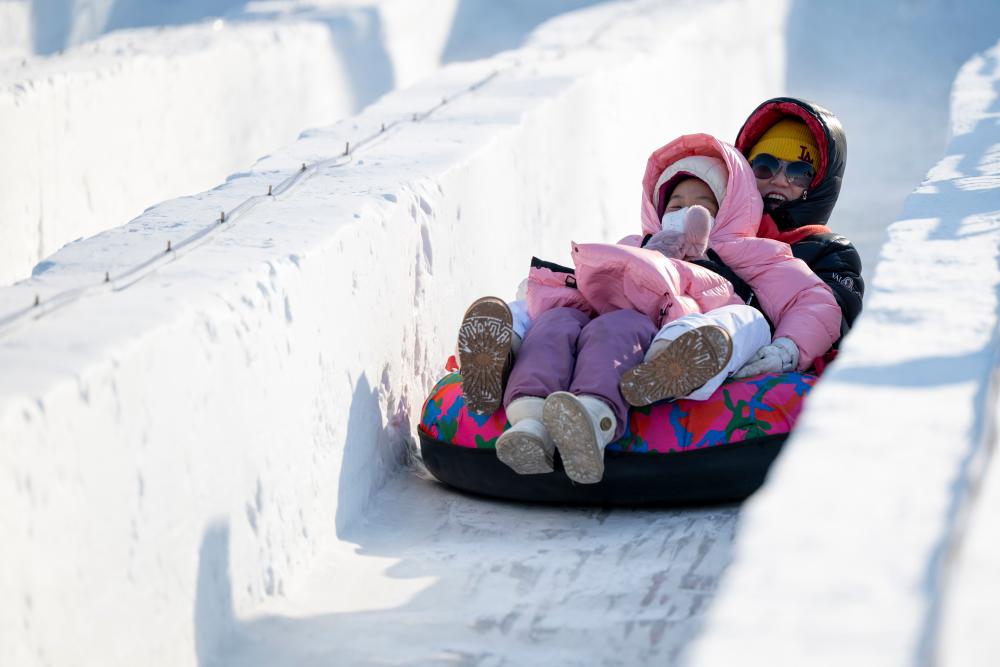 2026年1月1日,人們在2026第八屆哈爾濱松花江冰雪嘉年華園區內體驗冰雪娛樂項目。新華社記者 張濤 攝