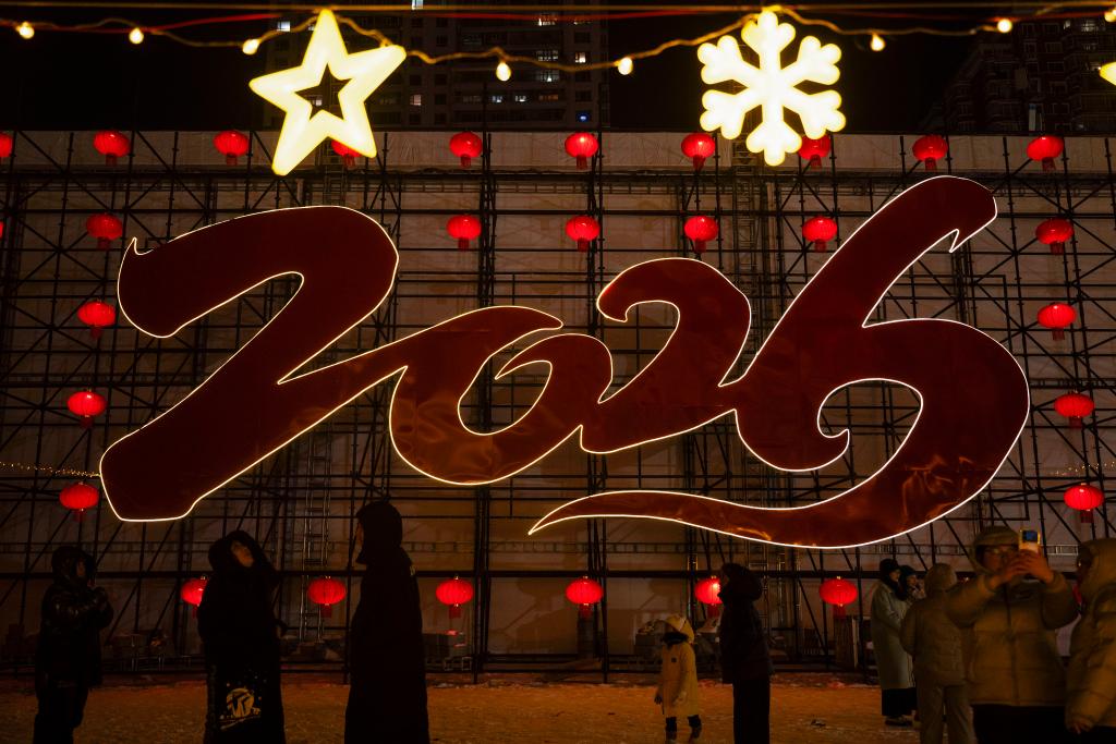 2025年12月31日,“冰城”哈爾濱多處景點燈光璀璨,吸引眾多遊客前來跨年。新華社記者 張濤 攝