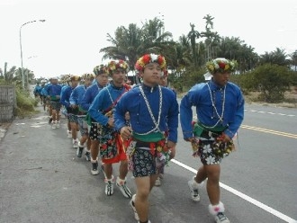卑南族群青年到部落驅邪納福。圖片來源:臺灣《聯合報》