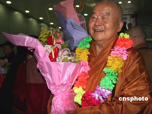 3月17日,臺灣佛教界高僧星雲大師抵達長沙受到湖南民眾的熱烈歡迎。(作者:白祖偕)