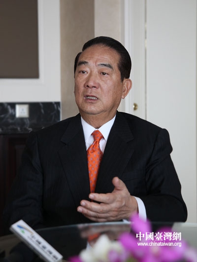 臺灣親民黨主席宋楚瑜30日在下榻酒店接受了中國臺灣網獨家圖文、視頻專訪(中國臺灣網 李徽 攝)