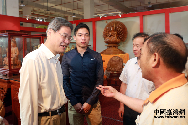 張志軍參觀考察莆田工藝美術城,與商家親切交談。(中國臺灣網 于斯文 攝)