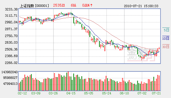 滬深兩市周三呈現衝高回落走勢,市場熱點切換。金融地產走弱,新能源概念股、中報高送轉個股漲幅居前;量能繼續保持在2000多億元的水平。滬指在連續大漲之後,上攻乏力,在2550點上方拋壓明顯增多。截止收盤,滬指報2535.39點,漲6.66點,漲幅0.26%,成交1072億元。