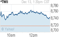 臺北股市加權指數2010.12.13