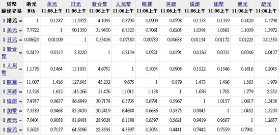 主要貨幣匯率