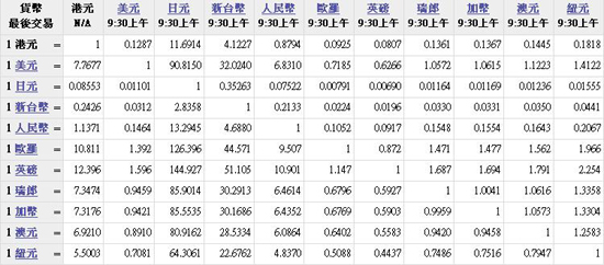 主要貨幣匯率