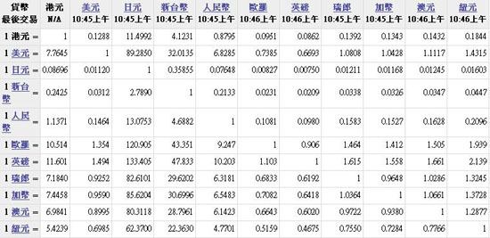 主要貨幣匯率