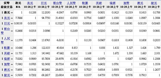 主要貨幣匯率2010.05.04