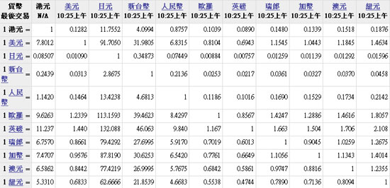 主要貨幣匯率2010.05.18