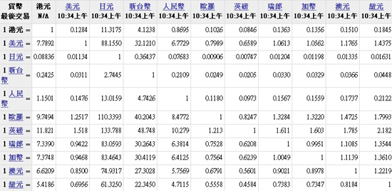 主要貨幣匯率