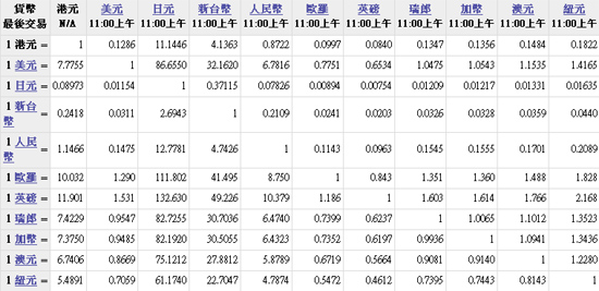 主要貨幣匯率
