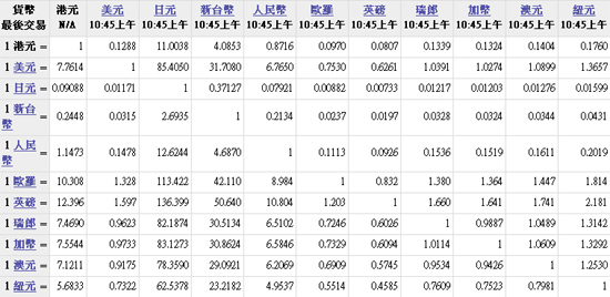 主要貨幣匯率