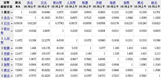主要貨幣匯率2010.10.12