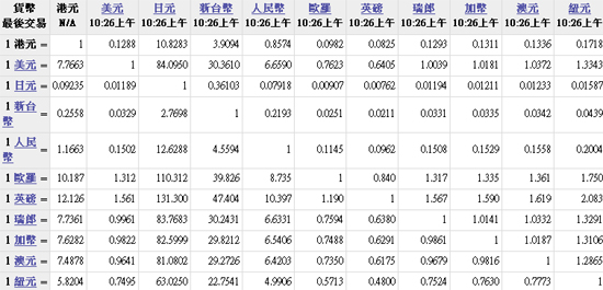 主要貨幣匯率2010.11.26
