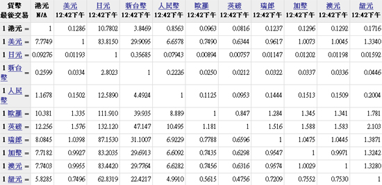 主要貨幣匯率