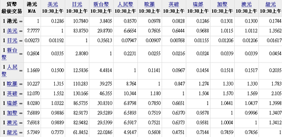 主要貨幣匯率