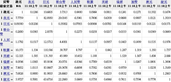 主要貨幣匯率