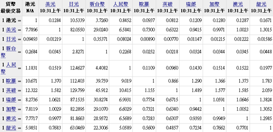 主要貨幣匯率