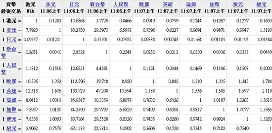 主要貨幣匯率