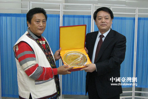 中國臺灣網3月3日北京消息 3月2日下午,來自臺灣高雄縣那瑪夏鄉的伊斯坦大·呼頌一行參訪了中央民族大學博物館,隨後國家民委副主任丹珠昂奔宴請伊斯坦大一行。(李丹)