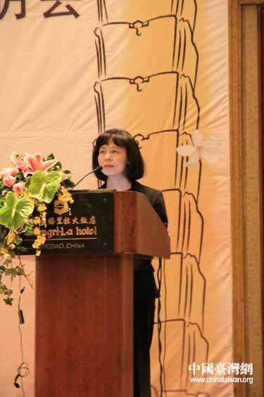 臺北世貿中心主任藍淑琪作推介說明。(圖片來源:青島臺辦)