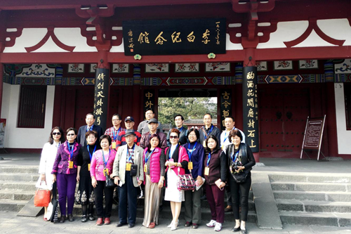 中國臺灣網3月24日綿陽訊 日前,應邀出席2016(丙申)年華夏母親嫘祖故里祭祖大典暨鹽亭嫘祖文化旅遊活動周的16位臺灣書畫家代表,在綿陽市臺辦副主任賀俊的陪同下,前往浪漫主義詩人李白的故里——綿陽江油市實地考察、採風。江油市臺辦、鹽亭縣臺辦有關負責同志陪同考察。