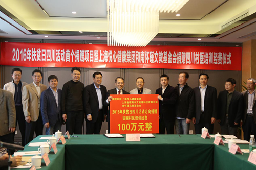 中國臺灣網4月13日成都訊 4月11日,上海悅心健康集團和南懷瑾文教基金會捐贈四川村醫培訓經費儀式在成都舉行。臺資企業上海悅心健康集團和南懷瑾文教基金會向省扶貧基金會捐贈四川村醫培訓經費100萬元人民幣。此為2016年扶貧日四川活動首個捐贈項目。