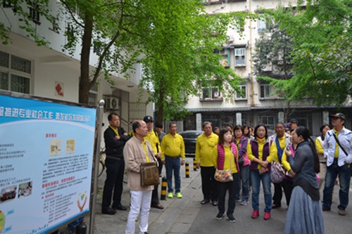 參訪團一行參觀了社區社會工作服務中心、長者互助社、兒童關愛中心等地,與在院落里練太極、下象棋的居民們拉家常,切磋技藝,親身感受成都社區的文化娛樂生活,並與社區工作人員圍繞鄉村社區建設、管理、服務等方面的經驗與做法進行座談,交流各自的心得體會。